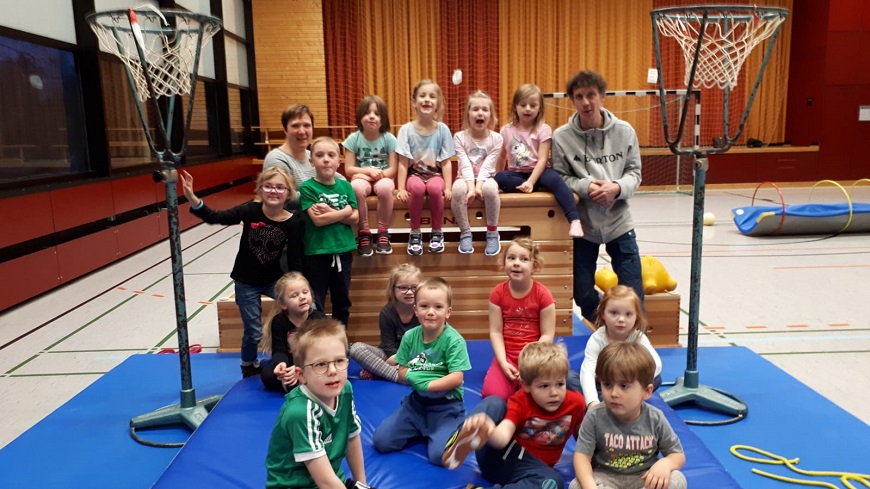 Die Kinder werden ohne ihre Eltern in ihrer Beweglichkeit gefördert und erweitern ihren Aktionsradius. Die Koordination wird verfeinert, der soziale Umgang erlebt mit dem Fortschreiten der Sprachentwicklung neue Bereiche. Spielerisch erlernen sie Grundformen des Turnens wie Purzelbaum und Rollen. Neben Bällen, Springseil, Reifen usw. kommen klassische Turngeräte wie Kasten, Sprossenwand, Barren, Trampolin oder Schwebebalken zum Einsatz. Die Kinder haben viel Spaß im Geräteparcours. Im Rahmen von kleinen Spielen werden Koordination, Rhytmik und Motorik gefördert.